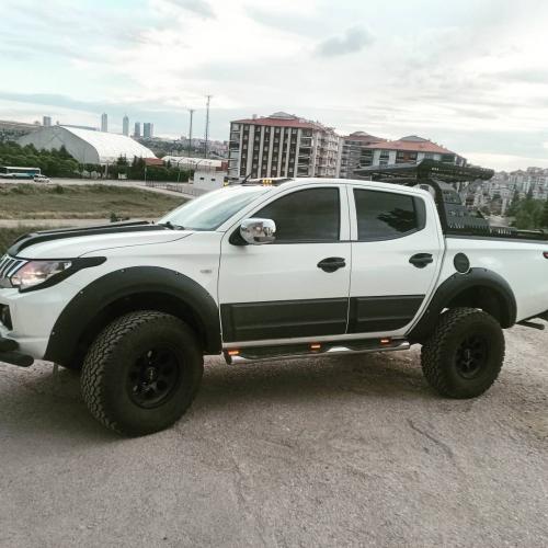 Mıtsubıshı L200 çamurluk seti. ABS platik ürünüden üretilmektedir. UV katkısı vardır, herhangi bir solma vs gibi bir durum ile karşılaşılmaz. Ürün 2015 ve 2018 arası Mıtsubıshı L200 araçları için uyumludur. Üzerinde paslanmaz inoks vidaları bulunmaktadır. A+ kalitesindedir.