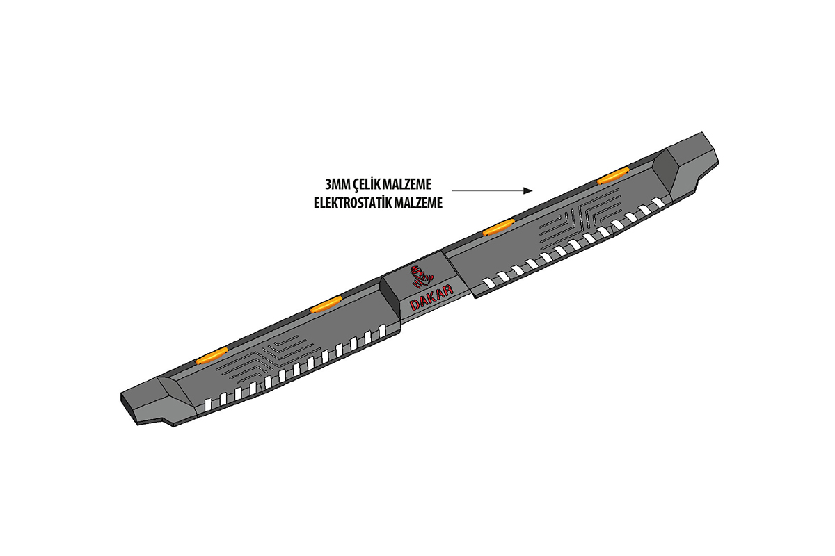 - Dakar yan basamakların gövdesi 3 mm Çelik malzemeden üretilmektedir. Üst kaplamasında Elektrostatik boya kullanılmıştır.