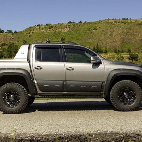 VW Amarok V6 çamurluk seti. ABS platik ürünüden üretilmektedir. UV katkısı vardır, herhangi bir solma vs gibi bir durum ile karşılaşılmaz. Ürün 2016 ve üzeri Amarok araçları ile uyumludur. Çift depo için her iki depoda benzin yeri açıktır. Üzerinde paslanmaz inoks vidaları bulunmaktadır. A+ kalitesindedir.